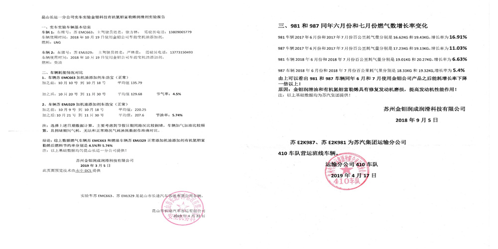有機(jī)氮鉬富勒烯和非硫磷有機(jī)鉬,自從投入市場以來,受到普遍認(rèn)可和廣泛應(yīng)用,目前國內(nèi)有大約100家左右的潤滑油企業(yè)、品牌作為高端、高性能潤滑油的核心配方,大量使用,并出口美國、歐盟、東南亞等多個(gè)國家。在汽車后市場領(lǐng)域,公司旗下兩大自主品牌引擎威哥、華億金衛(wèi)以每瓶198元全國統(tǒng)一價(jià),已經(jīng)在全國上百萬輛發(fā)動(dòng)機(jī)中使用,得到良好贊譽(yù),比如國內(nèi)高端玩車俱樂部愛卡聯(lián)盟,有機(jī)氮鉬富勒烯完全刷爆愛卡論壇。在蘇汽的節(jié)油經(jīng)過3個(gè)月的節(jié)油實(shí)驗(yàn),實(shí)車節(jié)油率達(dá)到5%以上;在青島港減排實(shí)驗(yàn)中,實(shí)車數(shù)據(jù)減排達(dá)到35%以上。